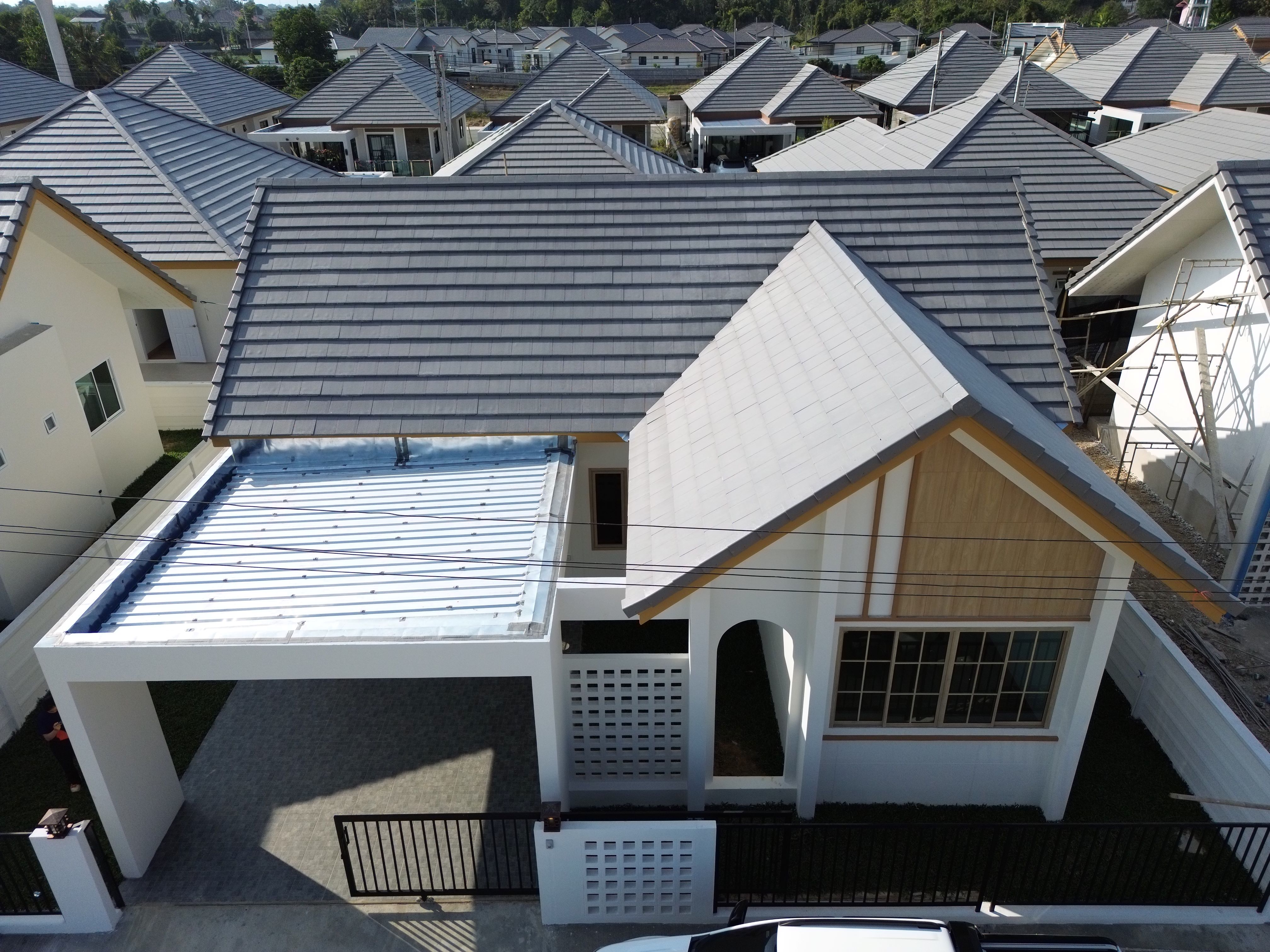 - แนวแผ่นและครอบหลังคาเรียบร้อยดี