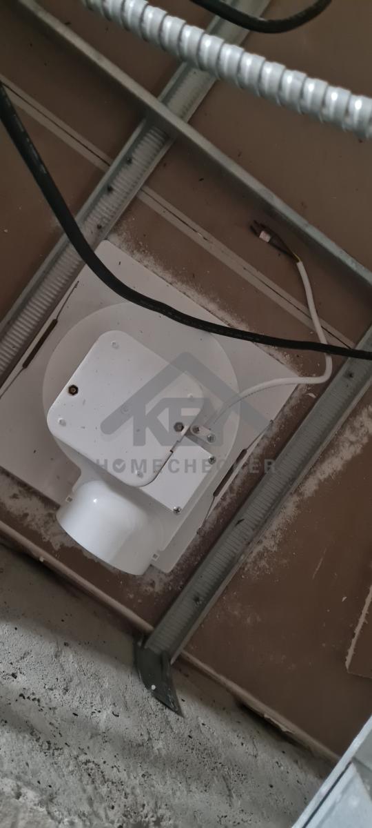 ต่อสายไฟเข้ากับ พัดลมดูดอากาศให้เรียบร้อย