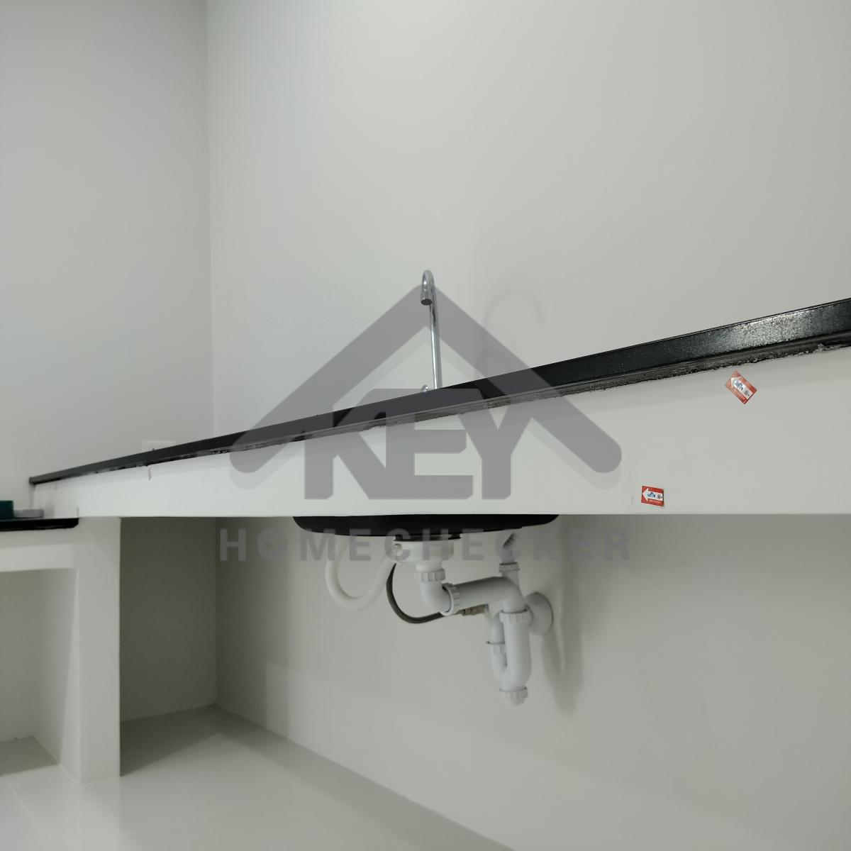 แก้ไข เก็บรอยแตกร้าวเก็บสีผนังใต้เคาน์เตอร์ให้เรียบร้อย