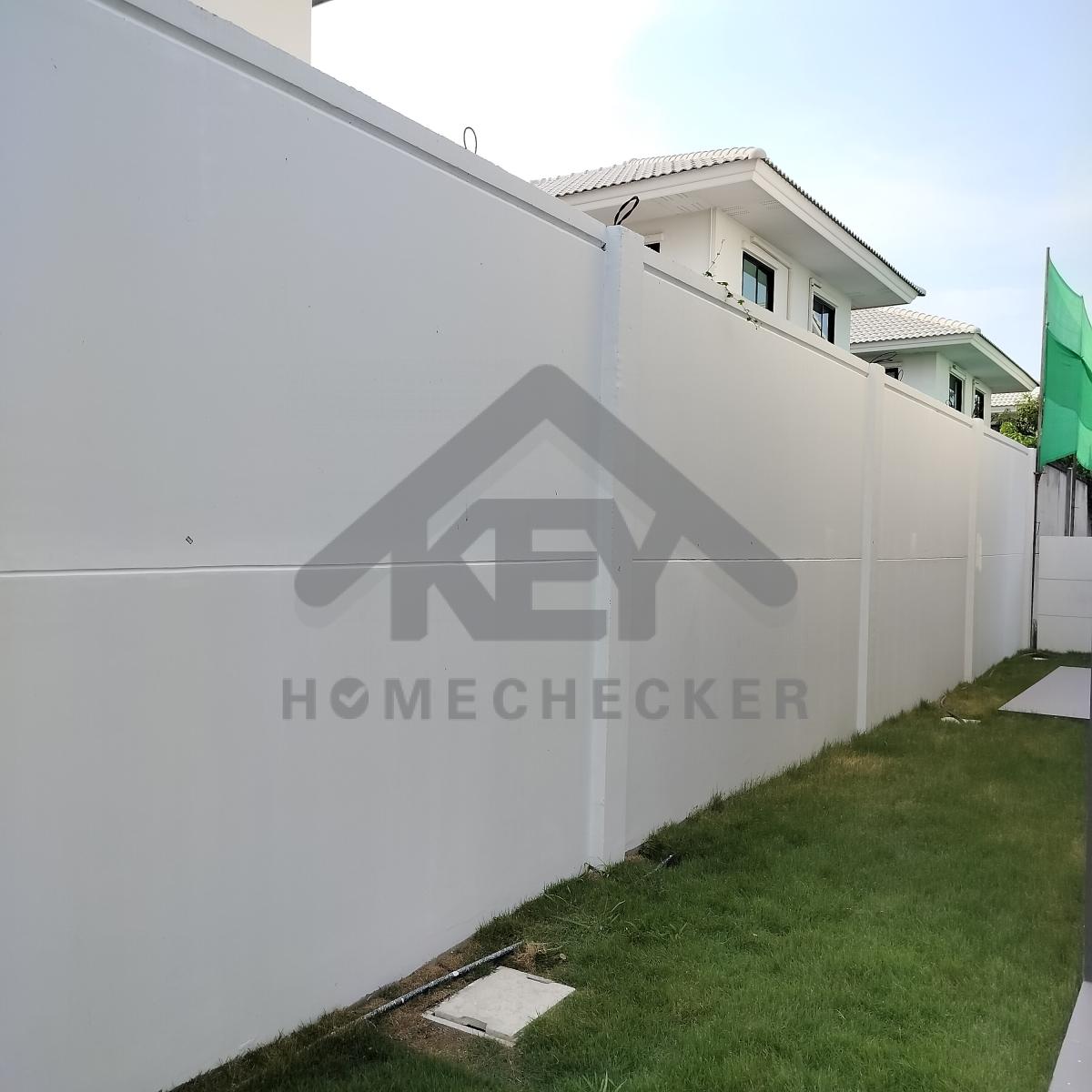แก้ไข เก็บงานรอยต่อและเสากำแพงรั้วทั้งหมดให้เรียบ และเก็บรอยแตกร้าวเก็บสีกำแพงรั้วใหม่ทั้งหมด